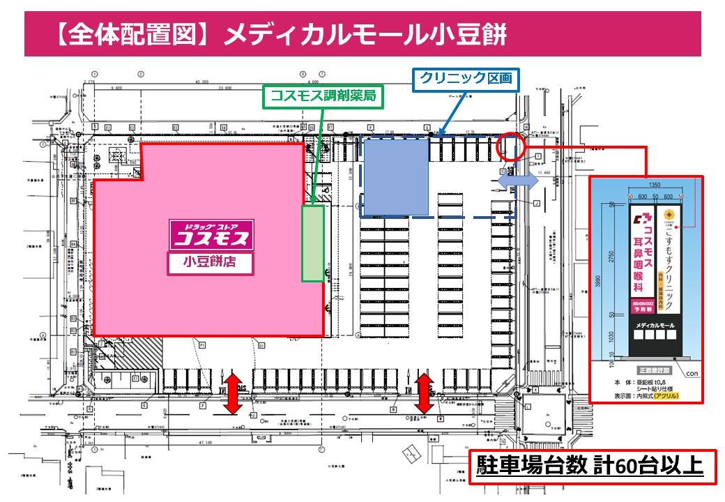 - 隣接地でドラッグストアが営業中です。 早期の認知拡大と継続的な集患が見込めます。