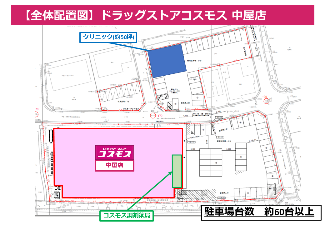 - 隣接地でドラッグストアが営業予定です。 早期の認知拡大と継続的な集患が見込めます
