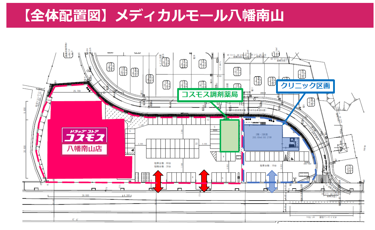- 隣接地でドラッグストアが営業予定です。早期の認知拡大と継続的な集患が見込めます。