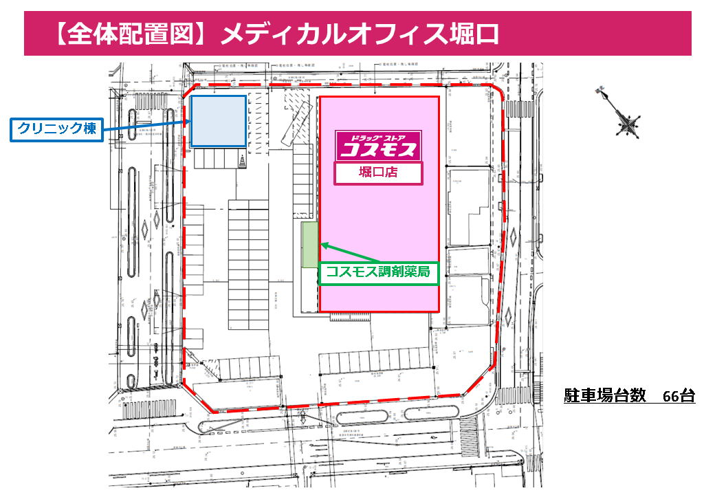 - お客様用駐車場66台を完備予定で、車での来院環境も抜群な物件です。