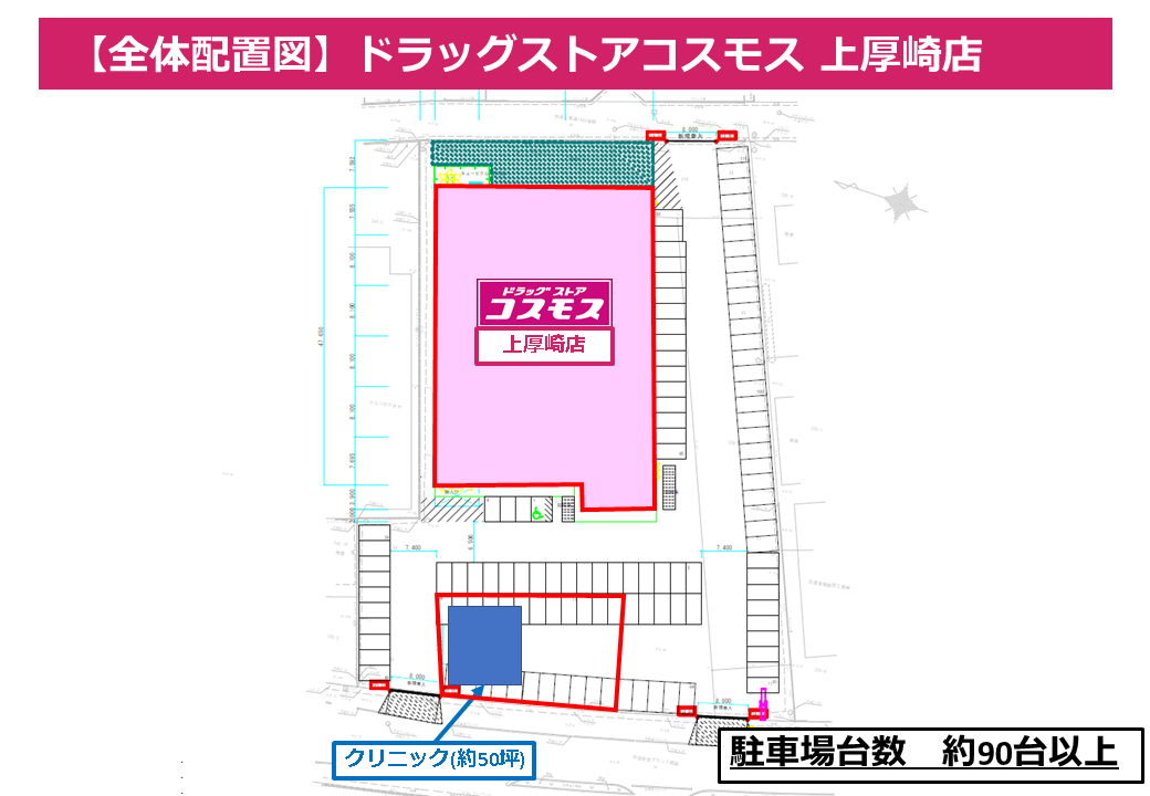 - 隣接地でドラッグストアが営業予定です。 早期の認知拡大と継続的な集患が見込めます。